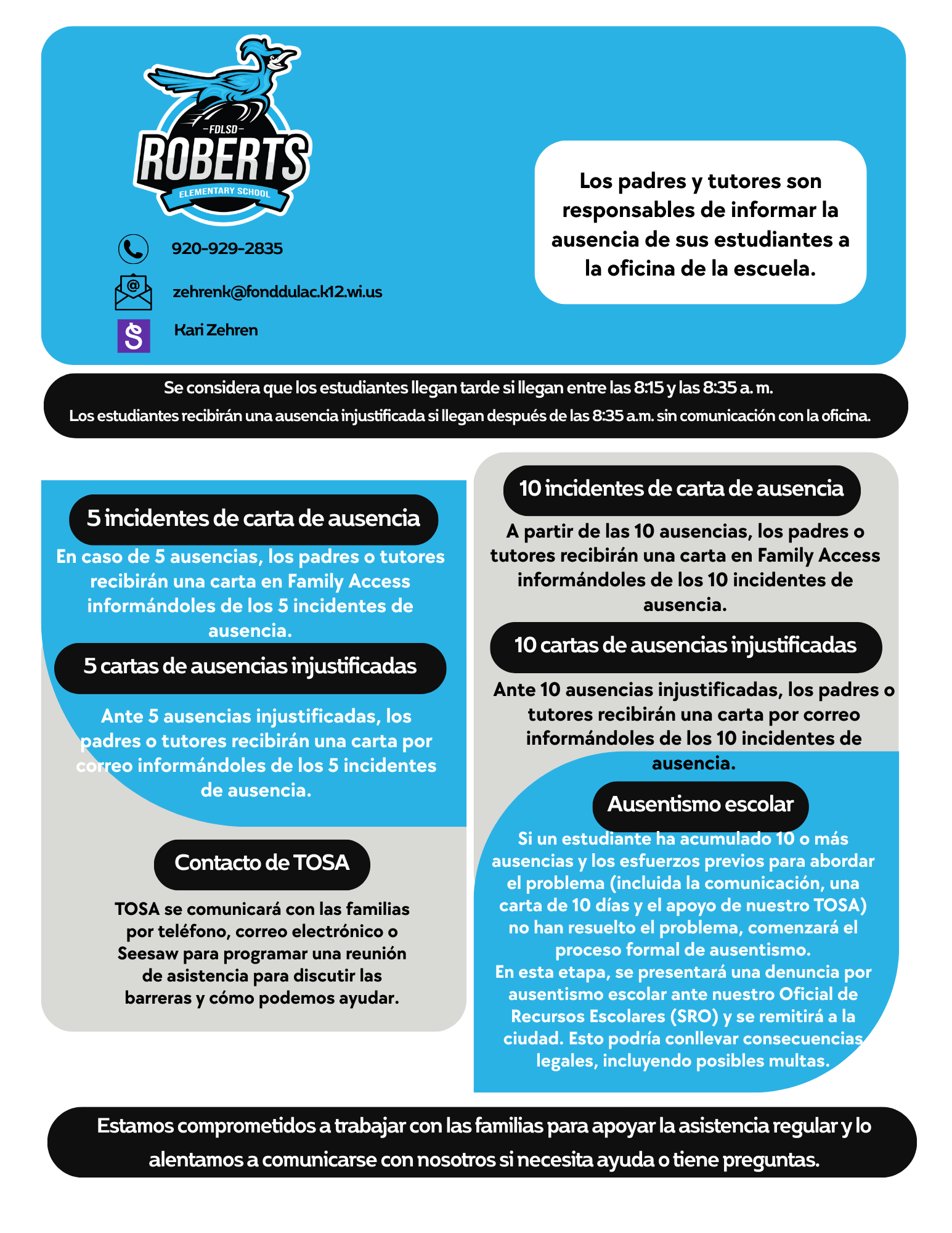 Please remember to Seesaw the main office, call or email the office when your student(s) are out for any reason. 920-929-2835 or zehrenk@fonddulac.k12.wi.us.